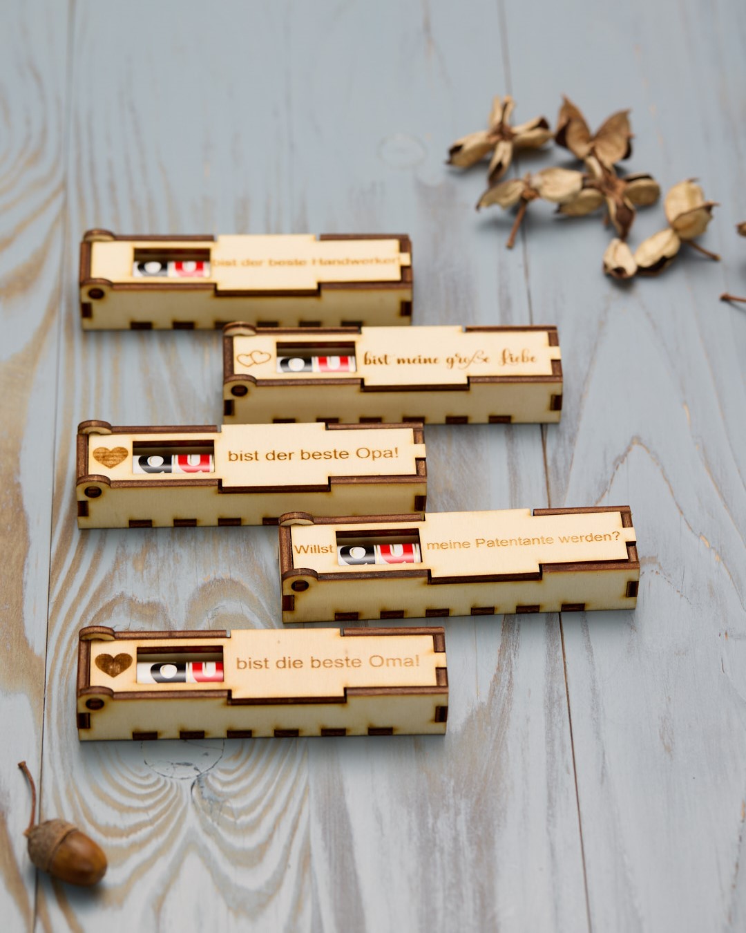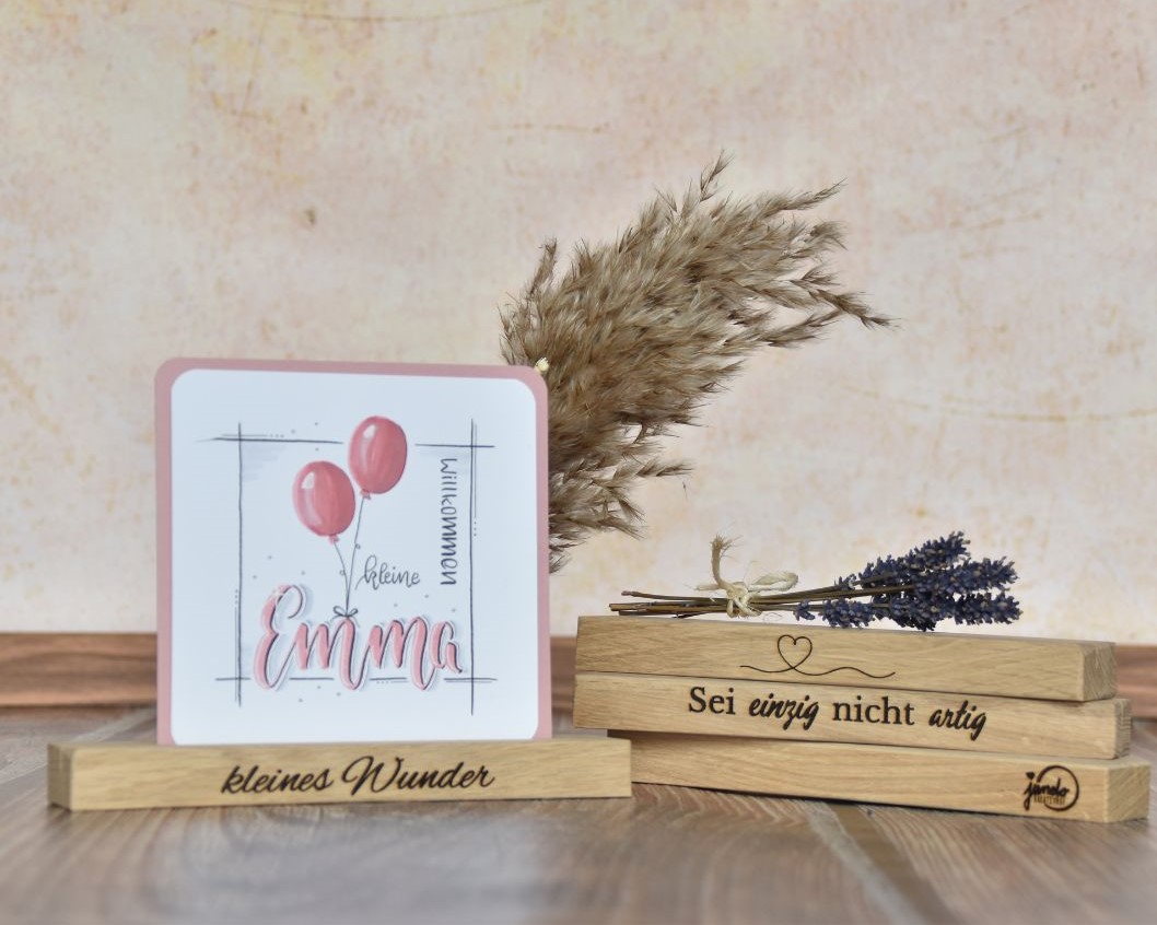 Bei Jundo ist jedes Stück ein echtes Unikat! Ob liebevolle Gravuren, individuelle Texte oder spezielle Schriftarten – wir gestalten alles nach deinen Vorstellungen. Unsere handgefertigten Produkte werden mit viel Sorgfalt und Liebe zum Detail gefertigt, sodass du ein ganz persönliches Geschenk erhältst.